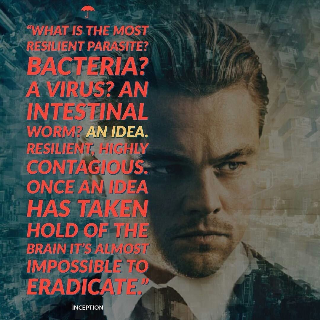 "What is the most resilient parasite? Bacteria? A virus? An intestinal worm? An idea. Resilient... highly contagious. Once an idea has taken hold of the brain it's almost impossible to eradicate. An idea that is fully formed - fully understood - that sticks; right in there somewhere."